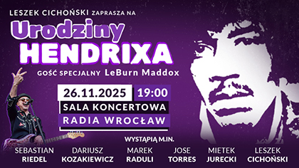 Jimi Hendrix i Leszek Cichoński – dwaj gitarowi wizjonerzy, których łączy nie tylko pasja do muzyki, ale także... zbliżona data urodzin! Już 26 listopada o godzinie 19:00 w Sali Koncertowej Radia Wrocław odbędzie się wyjątkowy koncert celebrujący ich wspólne święto.
